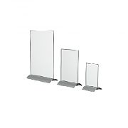 Кроме размеров, важна и ориентация. У нас представлены как менюхолдер вертикальный, так и менюхолдер горизонтальный, что позволяет выбрать оптимальное решение для любой информации. Например, менюхолдер настольный А4 в вертикальном исполнении идеально подойдет для меню напитков, а его горизонтальный аналог – для демонстрации блюд с фотографиями.
