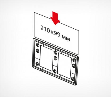 Универсальная рамка-ценникодержатель с девятью гнездами крепления рамки на разных уровнях относительно полки. Прорезь для рамки по широкой стороне рамки. Размер вставки - 210×99 мм (1/3 формата А4).