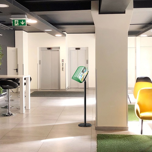 Комплект: напольное основание, изготовлено из металла и пластика, 10 РАМ формата А-4 с встроенным защитным протектором. Индивидуальная упаковка.