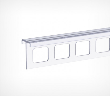 Перфорированная вставка позволяет изящно подвесить информационные сообщения, не отвлекая на себя внимания потенциальных покупателей. С помощью аксессуаров пластиковые рамы, карманы, прайс-дисплеи, плакаты и другие варианты представления информации легко крепятся на профиль.