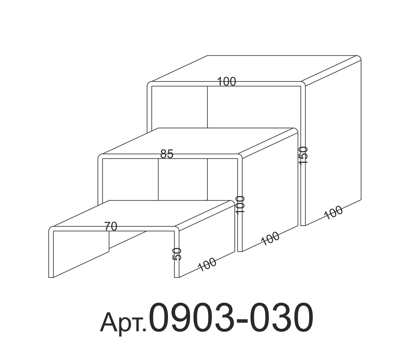 Комплекты подставок  различных размеров. Комплект состоит из трех подставок, подставки вкладываются друг в друга. Размер определяется по верхней части, каждая следующая подставка меньше размером на величину толщины стекла.