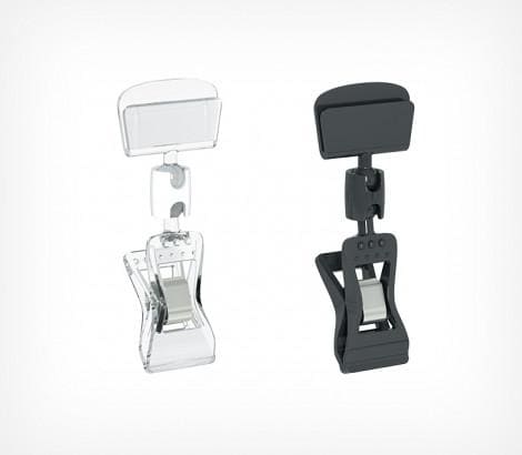 Универсальный ценникодержатель прищепка. Надевается на торец полки, край коробки, корзины, блюда толщиной до 10 мм.