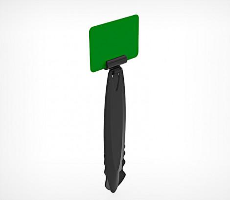 Дели-система комплект №6 DELI-ICE-SET — комплект для установки ценников возле товаров, которые выкладываются на «подушки» изо льда: рыбы, морепродуктов, иногда мяса. Состав комплекта: большой пластиковый держатель-лопатка в лёд DELI-STICK-ICE; держатель ценника с изменением угла наклона DELI-SH Особенности: держатель погружается нижним концом в лёд рядом с товаром, не занимая лишнего места; держатель ценника вверху позволяет подбирать любой удобный угол наклона вставки