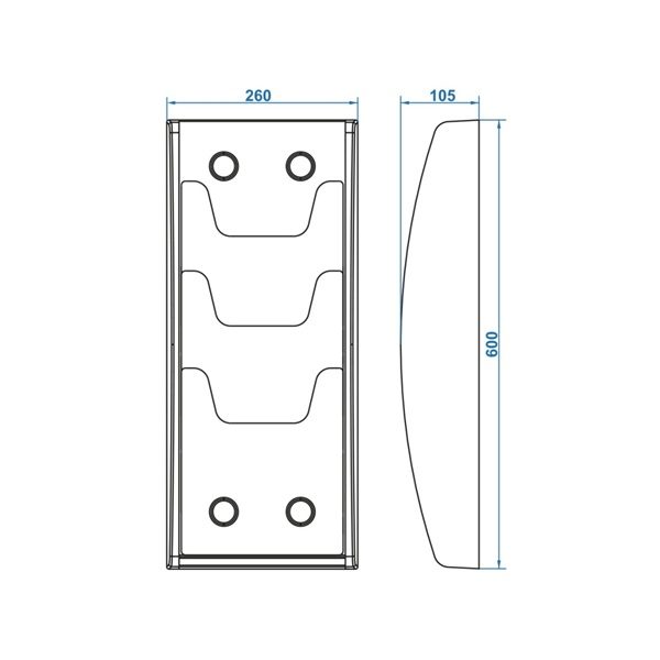 Пластиковая основа кармана изготовлена методом вакуумной формовки, прозрачные вставки - ПЭТ 3мм. Глубина карманов: верхний 60 мм, средний и нижний 20 мм