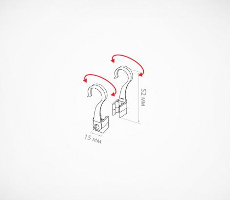 Крючок с подвижным основанием для подвешивания пластиковых рам на трубу до Ø 20 мм. Также позволяет подвесить рамку на металлические покупательские корзины и подвесные профили. Закрепляется с боковой стороны рамки. Для подвешивания одной рамки необходимо два крючка разной ориентации (левый и правый).