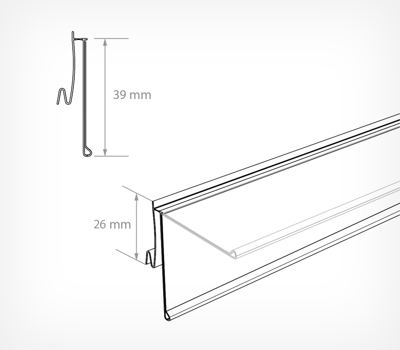 Разработан специально для полок с алюминиевым профилем ARNEG. Гибкое крепление позволяет откидывать ценник вверх для удобства и эффективности использования, избегая случайного демонтажа или поломки. Высота: 39 мм. Длина: 1235 мм.