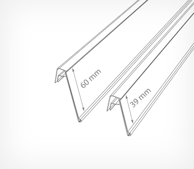 Ценникодержатель на корзины из метал. прутьев KOL - предназначен для крепления на корзины и дисплеи из металлической проволоки толщиной 4–8 мм. Угол наклона ценника к торцу полки — 60˚