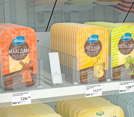 Пружинный толкатель FORTA GROSSA-2 имеет наклонную толкающую поверхность размером 44х132 мм с передним прямым ограничителем 55х56 мм. Разработана для товаров в высокой и полутвердой упаковке, с неустойчивым основанием, например: плиточного шоколада, сырной, мясной и рыбной нарезок, упаковок с колготками.