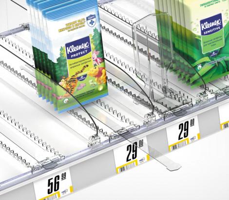 Пластиковая задняя опора используется индивидуально или в комплекте с ребристым профилем BACKLINE. Ребристые выступы в нижней части опоры удерживают плоские упаковки товара, обеспечивая его идеальную подачу покупателю.