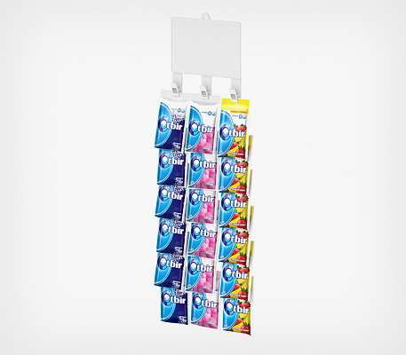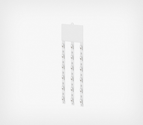 Топпер для подвесной пластиковой страйп-ленты. Предназначен для крепления пластиковых страйп-лент и размещения ценников или рекламных наклеек. Используется вместе со страйп-лентами для товаров в небольшой упаковке без отверстия для подвеса. Позволяет размещать до трех страйп-лент.